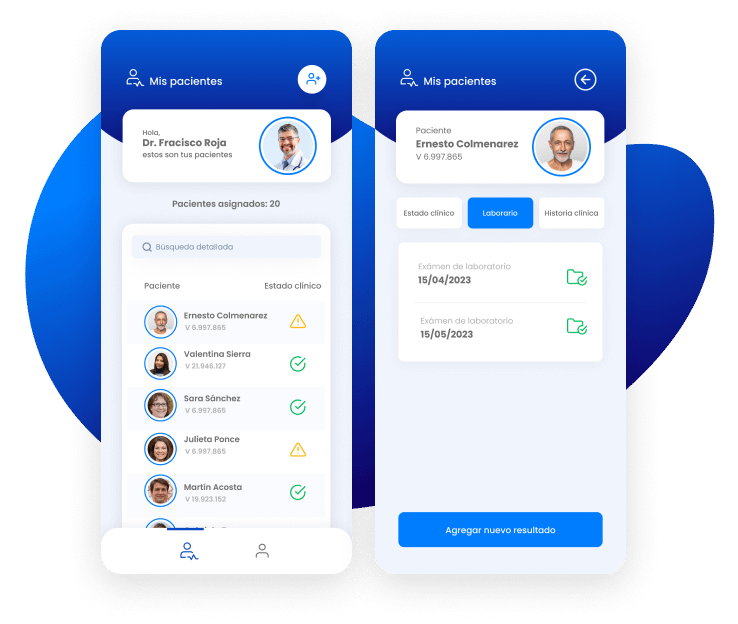A través de nuestro perfil médico, el especialista podrá monitorear el estado de salud de cada uno de sus pacientes de forma rápida y sencilla.